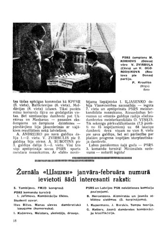 Žurnāla «Шашки» janvara-februāra numurā