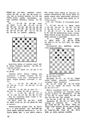 19. 31—26! 22 — 27 20. 42 — 38 17 — 21? un 23 — 29. Ja baltie spēlē 33 — 29, tad