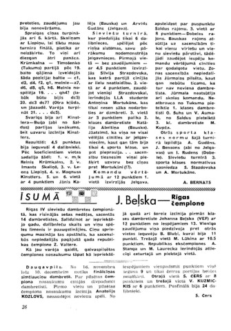 14 dambretistes. Salīdzinot ar iepriekšē ses dambretiste Johanna Beļska (VEF) ar