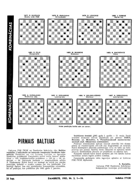 25 kap. DAMBRETE, 1983, Nr. 3, 1—16. Indekss 77130