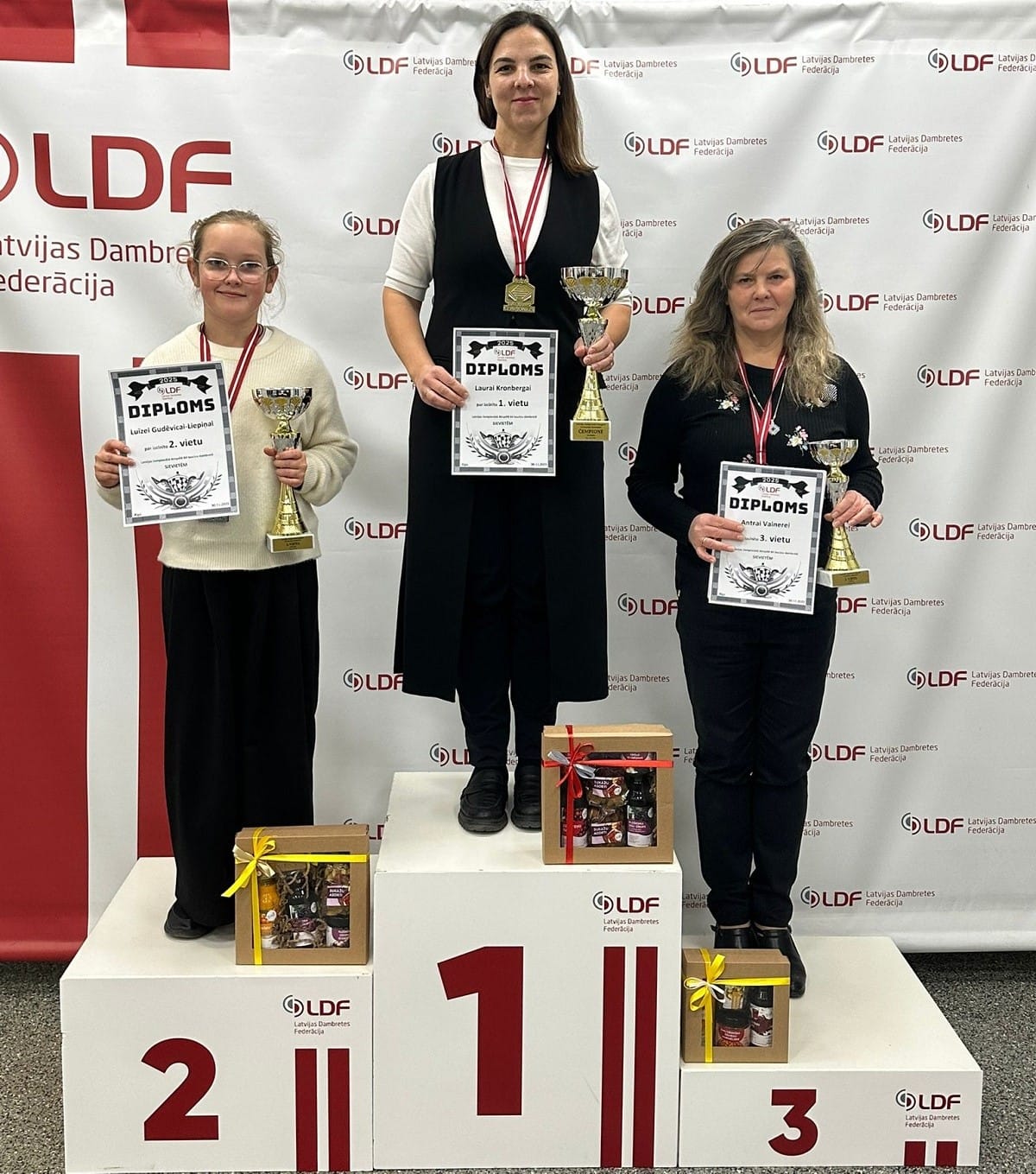 Sievietēm pirmo vietu, iegūstot 10 punktus, izcīnīja un par Latvijas čempioni kļuva Antra Valnere (Ropaži). Otrajā vietā arī ar 10 punktiem ierindojās un sudraba medaļu saņēma Laura Kronberga (Dambretes Attīstibas Biedrība Baloži). Trešo vietu ar 9 iegūtajiem punktiem izcīnīja un bronzas godalgu ieguva Regīna Piroņena (Bauskas Prātnieks).